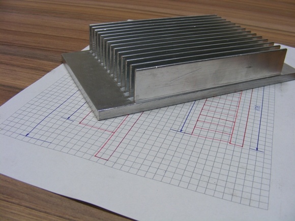 Sok munka árán lett belőle elfogadható alkatrész. A hűtőborda egy régről ismert típus. A hely szűke miatt ventillátoros kényszerhűtés szükséges a termelt hő mennyisége miatt. Adta magát hogyan kellene kialakítani a célnak megfelelőre.