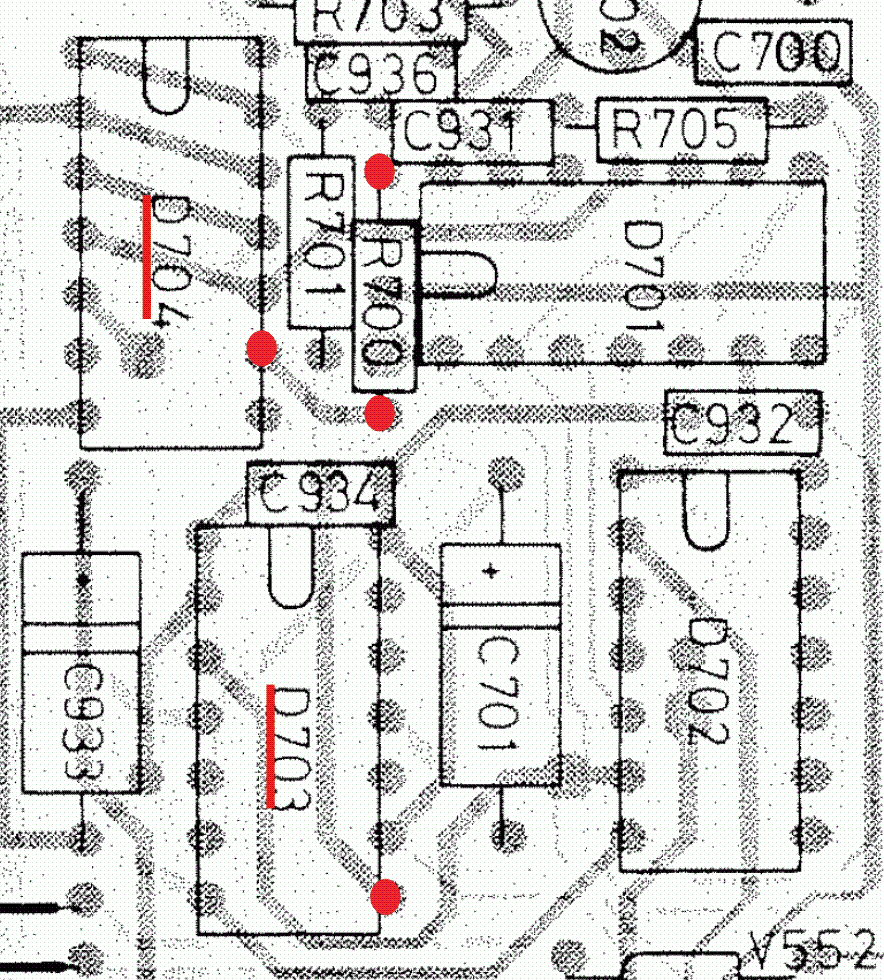 Megvolt, kösz ! Egy mérőzsinórral (van?) tapints a jelzett pontokra, ott a kalibrálójel. Ha nincs, egy darab szigetelt vezeték, egyik vége az egyik bemeneti (A, B) BNC lyukába, másik végével a pontokra. Egyébként először kicsit csiszold meg a probe kontaktust, lehet hogy oxidos. Ha utána van rajta négyszögjel tovább nem kell tapizni belül.