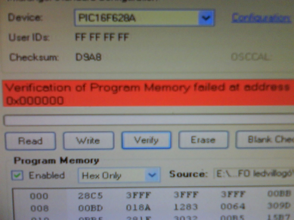 Ha a program kódvédelme be volt kapcsolva a programozáskor ( config bitektől függ! ), akkor a kiolvasás hibát jelez! Próbálj meg egy tuti programot valahonnan beletölteni!