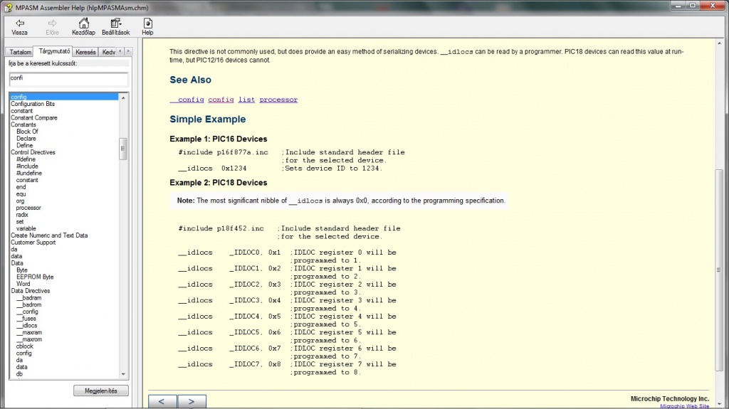 PIC18F452 volt kéznél. Expecting an opcode mnemonic __idlocs