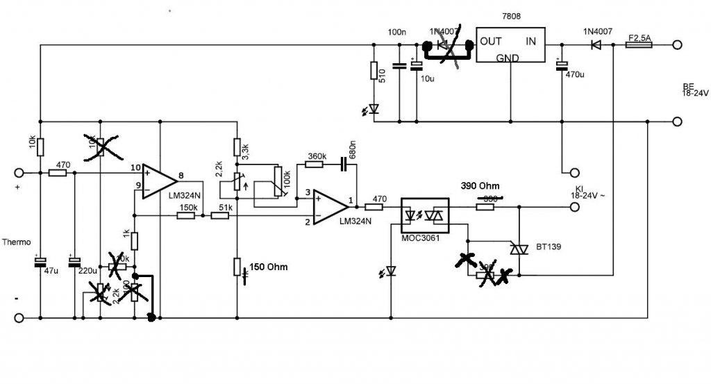 Nem akarom senki kedvét szegni, de aki nincs tisztába azzal mi az a műveleti erősítő, vagy optocsatoló, miért van benne az áramkörben, az hogy fog feléleszteni egy ilyen kapcsolást? Aki nem érti mi miért van, felakad egy hiányzó kondi értékén, az helyett hogy megnézné hol foglal helyet a körben, az nagyot fog csalódni! Mit csinál, ha elkezd izzani a pákája, mert vzoole és Attila és egyéb más egyébként nem lebecsülendő terve alapján megy. Sőt ide sorolom magam is! Az én tervem sem biztos hogy 100%-os, épp ezért töltöttem fel, hogy több szem többet lát,ha elrontottam valamit, jelezzék.