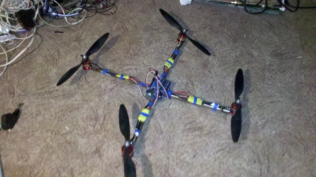 Most még munkában vagyok, képet és pontos alkatrészlistát este, vagy holnap tudok felrakni. Motor tesztekig eljutottam, az erő is megvan. (Egyébként egyszer véletlen kihúztam az arduinot, mielőtt áramtalanítottam volna a motorvezérlőket, úgyhogy elkezdett maxon forogni mind, kilőtt volna bele a plafonba, ha nincs lerögzítve ), a motorok ereje 1200kv, a propellerek mérete 10", a váz 300g, amit kinéztem, de nem vettem még meg aksi: 5000mAh, 11,5V, 600g, számítások alapján (nem megbízható netes kalkulátor szerint) 8 kilóval gond nélkül meg kell birkóznia