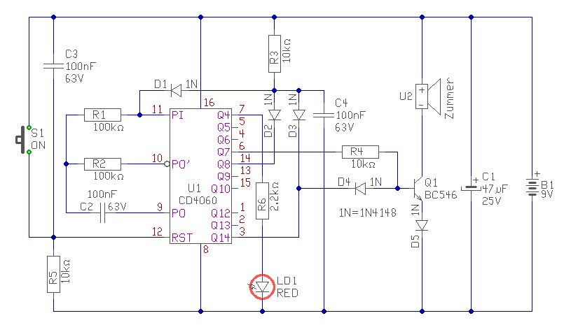 Szia! Köszönöm a választ! Ilyen zümmerem van gondolom ez az. zümmer Köszi a kapcsolást. Ha jól látom ez konkrét 3 perces. Igazából én ezt játékra akarom használni (mint sakkban),ebbe a kapcsolásban melyik az az alkatrész amelyik helyett esetleg egy potméterrel szabályozható lehetne az idő. Vagyis mondjuk 1 től 5 percig. Hova kellene beépíteni és mekkora poti kell legyen? Köszi! Üdv!