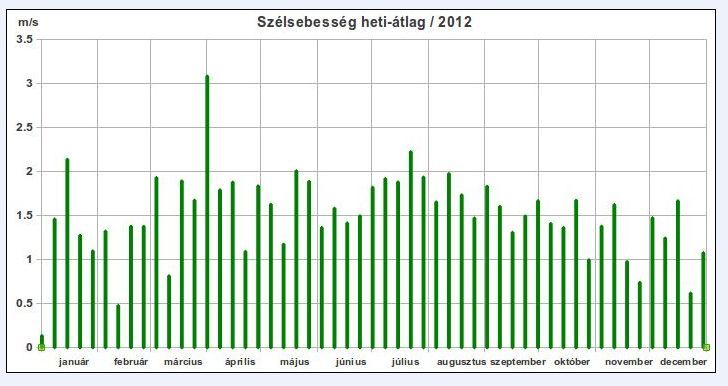 Az utobbi 2012-es szél és termelési adataid figyelmesebb átnézésre,arrol is árulkodnak,hogy a kihelyezett szél traduktorod nagyon örvényes helyen van. Ez a magyarázata, a méréseid mutatta nagyon nagyfoku szélingadozásoknak.probáld meg magasabbra,és kevésbé turbulens helyre kitenni a szélméröd kültéri egységét,meglepö eredményre fogsz jutni.