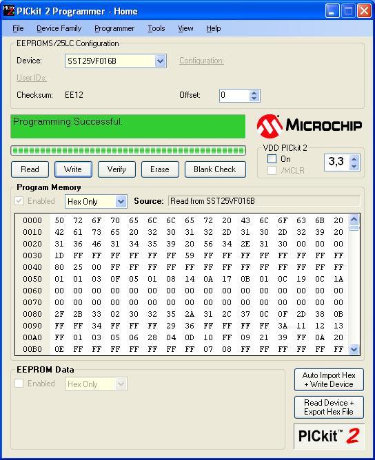 Életveszélyes a típus autodetektálása, ha SPI EEProm van a PICKit2 -höz kapcsolva. Mivel nem tudja detektálni (még azt sem veszi figyelembe, hogy utoljára egy nem detektálható családot használtak), végigpróbálja az összes családot, egy 3.6V -os memóriára rákapcsolva a 13V -ot is (CE# -- MCLR / VPP). Megoldás az induláskori keresés, detektálás letiltása vagy jó előre a manuális kiválasztás beállítása vagy a család kiválasztása utáni csatlakoztatás. A hozzászólás módosítva: Jan 27, 2013