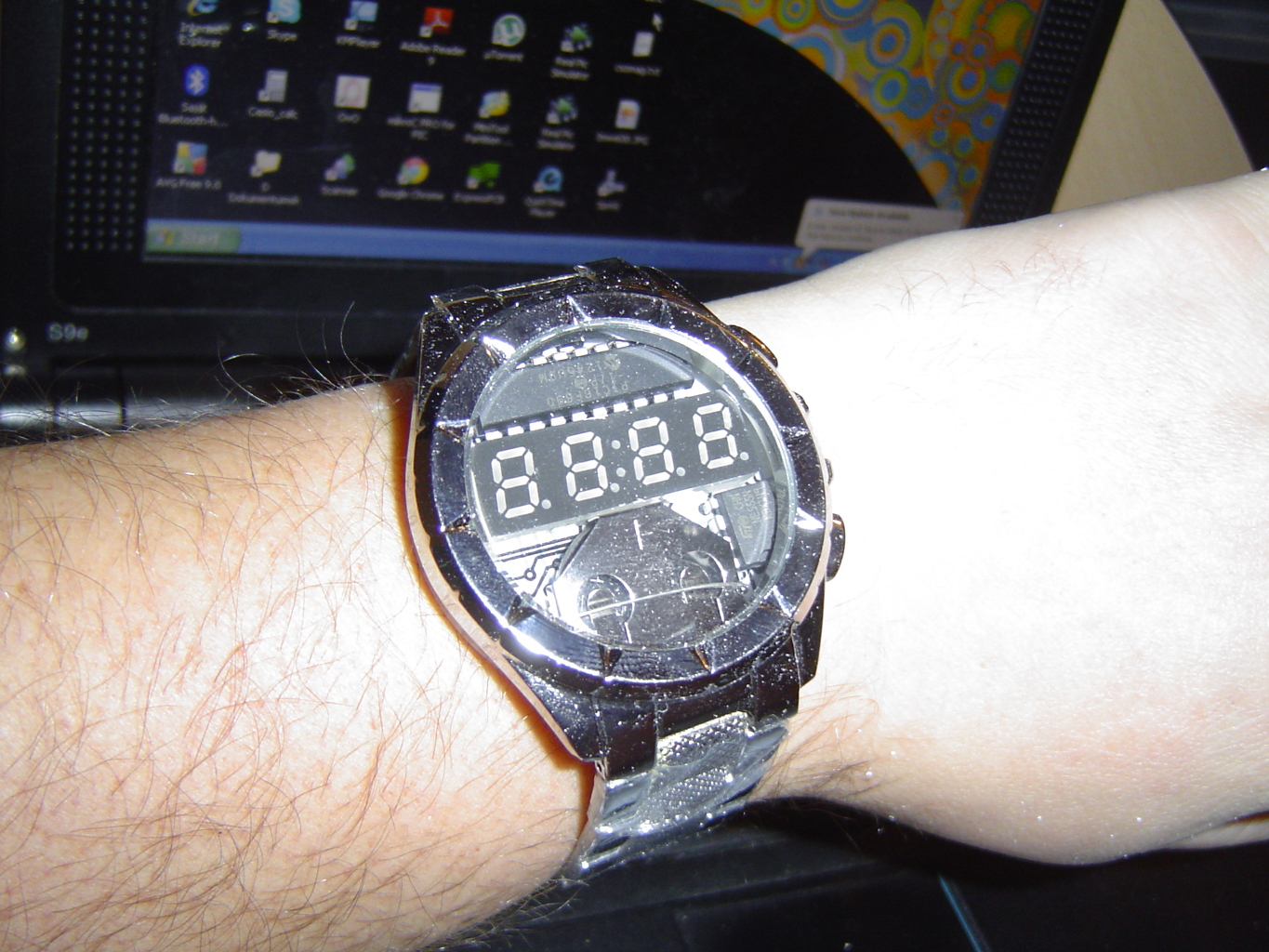Egy rtc és pic alapú karórán dolgozgatok (Csupasz kolléga ötletéből), amely egy nagyobb méretű órának a hordható klónjaként készül. A kijelző 10mm-ről 7mm-esre lett módosítva. A programja pic 16f690-hez lett illesztve (HP41C segítségével). A zsugorítás, hogy a meglévő óratokba beférjen, több próbálkozásból fog összejönni úgy érzem. Ízelítőnek néhány fotó a készülő óráról: (Az smd változat is tervezés alatt...)