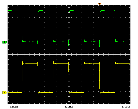 Itt egy jó kis szkópkép, aminél négyszöget kapcsoltam a bementre,és túlvezéreltem.