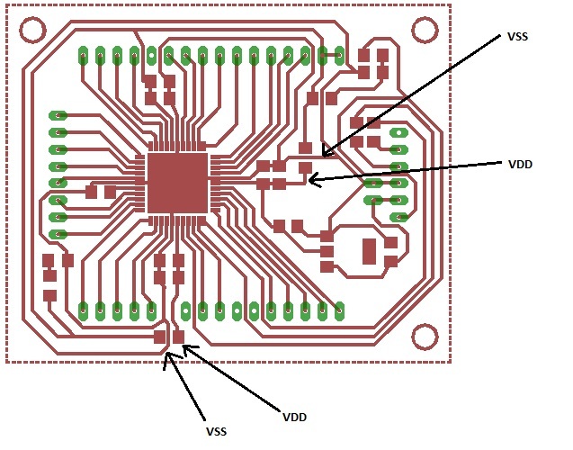 A jobboldalon jelölt VDD-VSS esetén egy 0 Ohm-os ellenállás található és így egymás felett futnak a vezetékek.