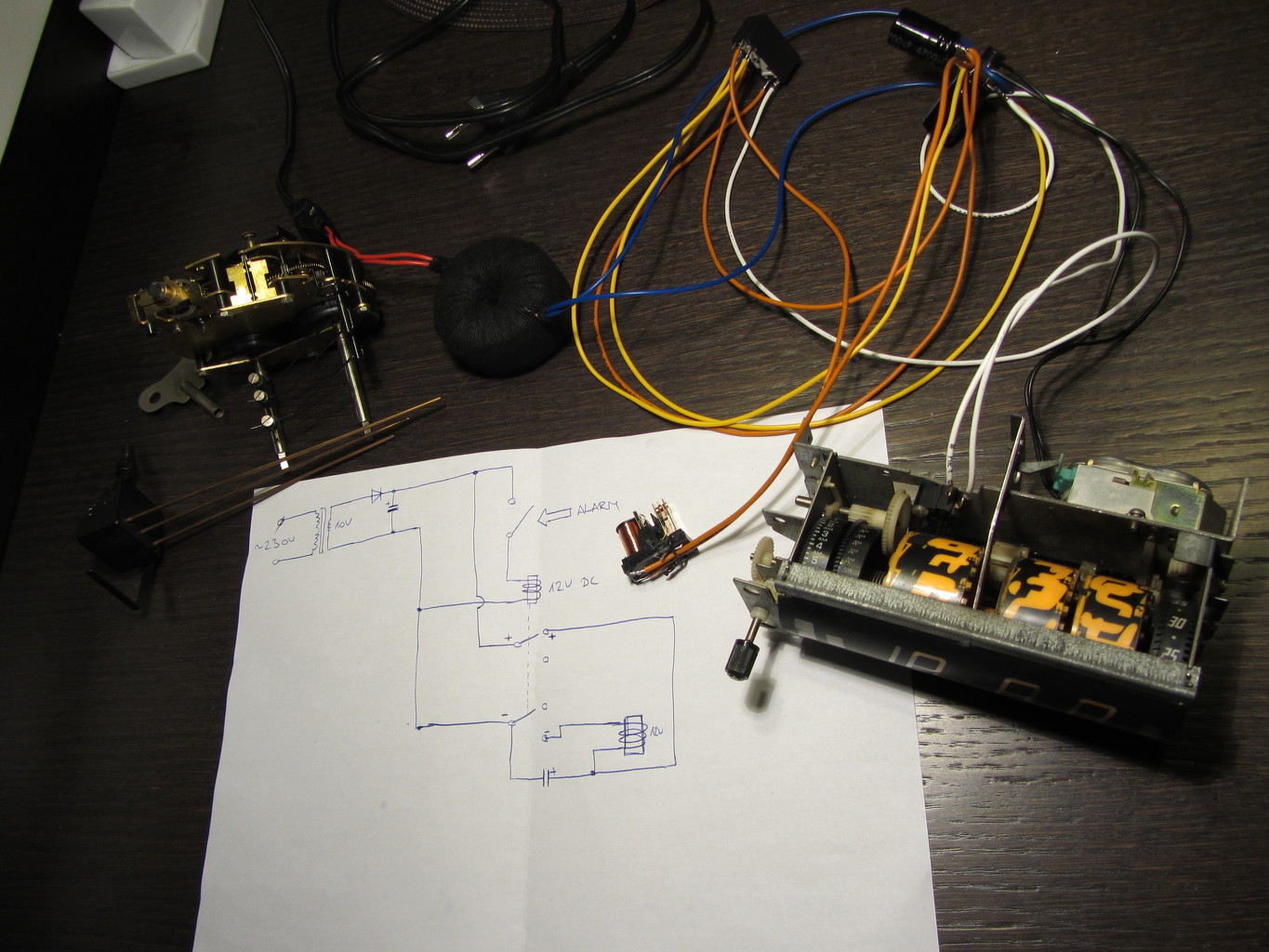 A 4700mikroF "időzítő" elkót 2200mikroF-ra kell cserélnem mert most indokolatlanul sokáig (2-3 másodperc) tartja behúzva az elektromágnest. Maga a monostabil rész természetesen úgy van kitalálva (kirelézve ) hogy a kikapcsolt-készenléti időben feltölti az időzítő elkó-t. Az időzítőre azért volt szükség, mert az óra mikrokapcsolója kereken 2 órán keresztül van bekapcsolt állapotban a mechanikus ébresztő rész aktiváló karját viszont felrántás után vissza kell ejteni, hogy elkezdődjön a dallam folyamat.Eredetileg a mechanikus kalapácsos-ébresztő részt a Z568M nixie órával akartam kombinálni, de később rájöttem hogy nem akarok ébresztős nixie-t... A hozzászólás módosítva: Feb 3, 2013