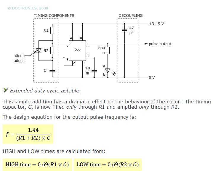 Nem tudom mi a kérdés. Természetesen 5V-al is működik az 555 de mit szeretnél készíteni. Ha rövid impulzus idejű dolgot, akkor diódák nem kellenek. A töltés a két ellenállás összegén, a kisütés csak az alsó ellenálláson történik. De kipróbálhatod a segédprogrammal is. üdv! proli007