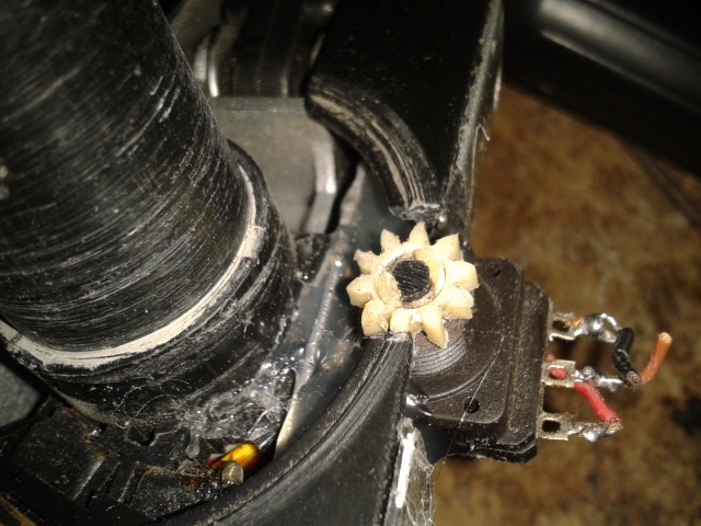 ![]() Van ebben alapból is a végállásnak ütköző. Attól féltem, hogy nem találok olyan fogaskereket, aminél létrejön a tökéletes áttétel, azaz, hogy az eredeti gázkar, és a poti végállása ugyanolyan legyen, és ne ütközzön a gázkar, mikor még lehetne csavarni a potin.. Úgy nem lehetett volna kihasználni a teljes teljesítményt, de csodák-csodájára nem lett ilyen gondom. Egyébként már minden kész van nagyjából, csak be kell dobozolni(vezérlőt), és össze kell vezetékezni mindent-mindennel. Az akku feszültség mérőjét még ki kell találni,(próbálni, és megtervezni a nyákot) de szerintem nem nagy ügy.
