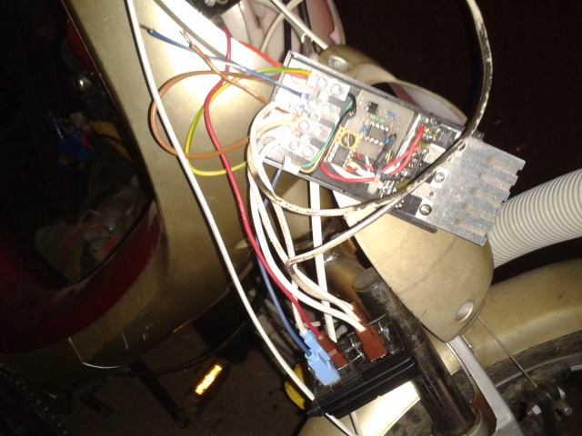 Ha valaki emlékszik rá, vagy követte a mobiltöltőm fejlődését, ez a doboz a töltöm legelső változatának doboza.(mellesleg.. )Bővebben: Link Ez működik, ezt építettem meg fentebb, mármint a vezérlőt. Megvan a helye, megtervezem a rögzítési pontot a dobozon, és a bicikli vázán, mert a rezgés miatt egy idő után széteshet, és zötykölödhet, ha nem rögzíteném fixen, így az utolsó képen is látni, hogy minden csavarozva van. A fehér vastag vezeték alatt egy 7815 rejtőzik, ami az 555-t, és a mosfert drivert látja el feszkóval. A sorkapocsba érkezik a az akku, és onnan is megy ki a motorra a vezérelt táp. A mellette lévő fehér csatiba csatlakozik a gázkart potija. Ha ezekkel is megvagyok, már csak mindent fel kell szerelni(kezelő szerveket, amiket az újrakábelezés miatt leszereltem), és összekötni a kábeleket, és kész is a biciglink. A hozzászólás módosítva: Nov 24, 2012