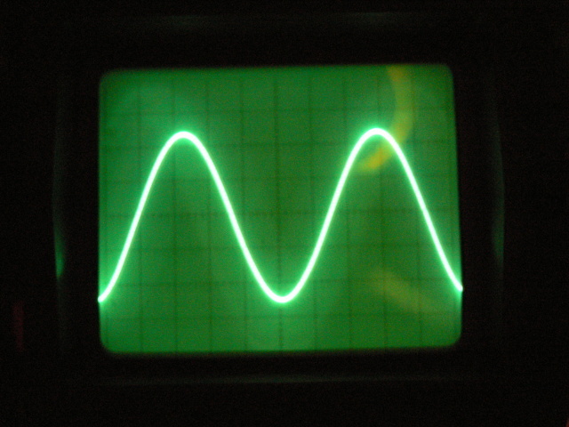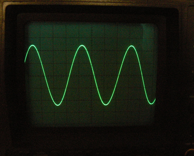 Hát, ha bármi is látszódna a színuszon, az már 10% feletti torzítást jelentene!
