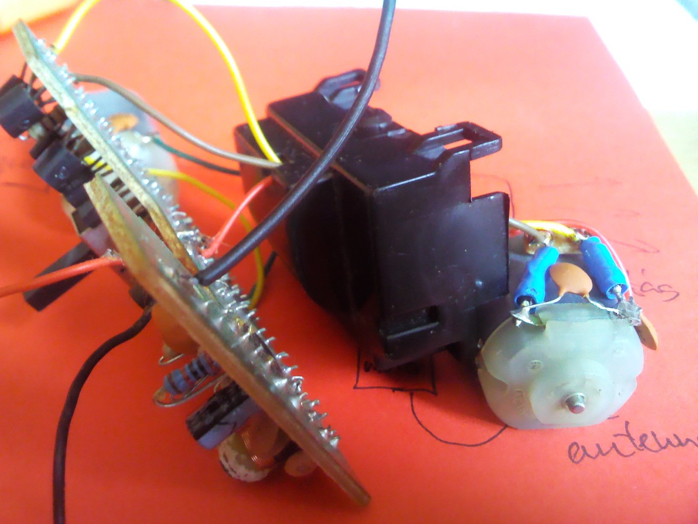 Ezt nem én építettem, hanem bontottam egy gyermekkori játékomból, amit már vagy 10 éve nem használtam. Gondoltam jó lehet valamire. 40 megás egység két motorral. Szerintem semmi PWM meg ilyenek, egyszerűen csak jelre feszültséget kapcsol a motorokra. LED-el kipróbáltam, így tudok LED-et távirányítóval kapcsolgatni. Mi legyen belőle? |