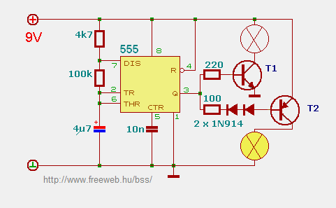 "Valahol olvastam a neten, hogy 5V-ról táplálva az 555-öt és 24V-ot kapcsolgatva a PNP-vel nem működik megfelelően, ezért kérdeztem." Cseppet össze vissza beszélsz.. Hol volt eddig a rajzodon 24V. De ha valamiből kiragadsz egy mondatot, akkor a rajz hiányában nincs értelem. Ha nem azt rajzolod le, amiről írsz, annak sem lesz se füle, se farka. Meg kellene ismerni az 555 működését, és alkalmazásának határait. A két idő mindig annak függvénye, milyen úton töltődik és sül ki a kondi. Ha pozitív impulzust állítasz elő, (NPN ahogy írod, diódával) akkor Az R1 nem lehet kisebb annál az értéknél, hogy amikor a kisütő tranyó kinyit, a kollektoráram ne haladja meg a 20mA-t. Ha negatív az impulzus, akkor az R2 kis értékű, de akkor sem haladhatja meg a kisütőáram a 20mA-t. De tönkre nem megy a tranyó, mert míg előző esetben a töltés alatt folyamatosan be van kapcsolva a kisütő tranyó, a második esetben meg csak a kisütés pillanatára. A villogó kapcsolás kitöltése közel 50%, nem sok köze van a dologhoz amiről írsz. Max, hogy abban van PNP és NPN tranyó is. Kicsit konkretizálni kellene amit szeretnél (és határ ne a csillagos ég legyen), vagy tanulmányozni az 555-öt, ha már ragaszkodsz hozzá. üdv! proli007