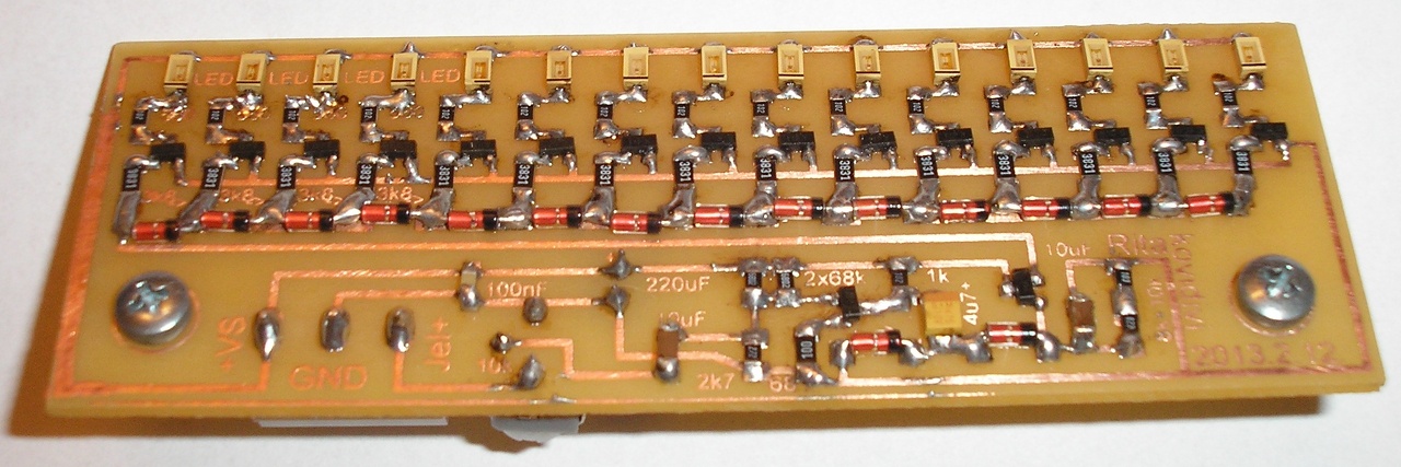 Mostanában alkottam egy kicsit. Elkészült a kapcs. üzemű tápom kiegészítő nyákjainak SMD változata, letesztelve, megfelelően működik. Az induktivitás 40uH körüli, Skori féle tervezés, NE555-tel. Előzmények: Bővebben: Link Rendeltem EBay-ről egy alkatrész tesztert, bedobozoltam. Az előlapja silány lett, sajnos a technocol átáztatta a papírt... Cserébe nagyon hasznos kis szerkezet. Bontottam egy kazettás rádiót (diódákért), laptop alaplapot (sms tranzisztorokért), egy szkennert (LED-ekért), és ezekből építettem egy 15LED-es kivezérlésjelzőt. 15V-ot igényel a diódák miatt. Ha kettő kell az erősítőbe, akkor csak el kell fordítani 180fokban a nyákot, és már mehetnek is egymás mellé. Egymás alá már kicsit nehézkesebb az elhelyezése. YouTube A nyákja vasalással készült, műnyomóval, elég jó lett a minősége, pedig még csak párszor vasaltam vele. A hozzászólás módosítva: Feb 12, 2013