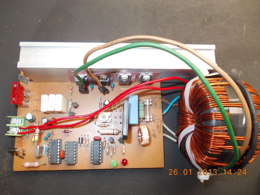 Láthato a trafo is rajta aminek a primer tekercse gyári, a szekundert én tekertem, 2x1mm és 8,50v. Remelem segitetenek ezek az infok.