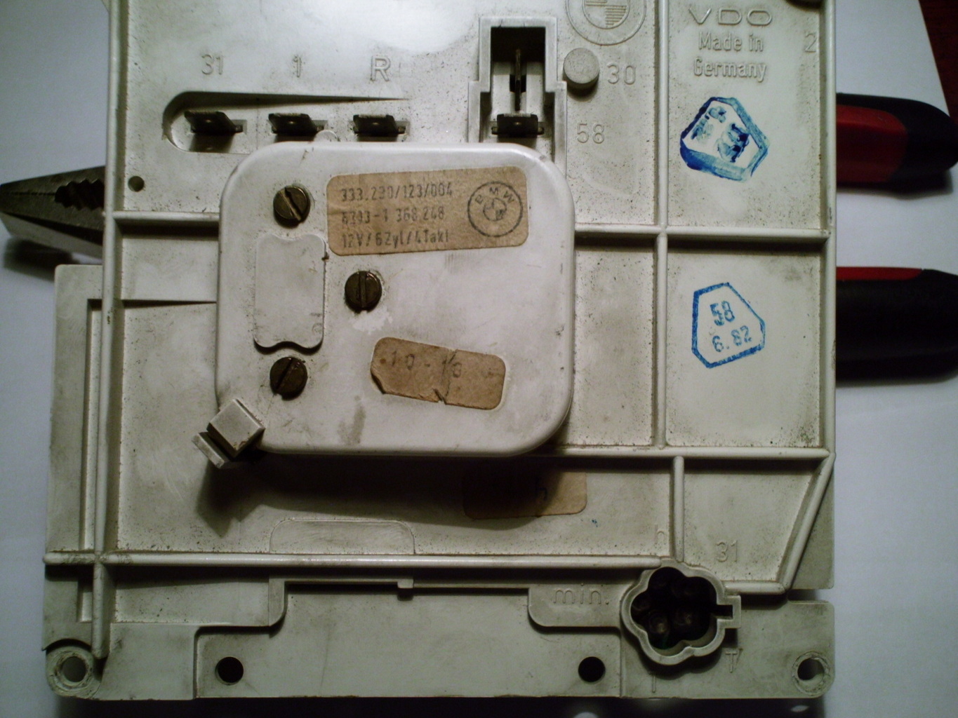 Rendszeres látogatója vagyok a fórumnak.......olvasgatni szoktam és tanulok belőle. Most azonban megakadtam egy dolgon...szeretnék segitséget kapni ha lehet. Egy BMW fordulatszámmérő bekötésében. Elektronikával amatőr szinten foglalkozom, de az autóelektonika számozásait nem ismerem. Nem tudom hogy mit és hova kell kötni, hogy a fordulatszámmérőt beüzemeljem. Kisérletezni nem akarok vele, nehogy tönkretegyem, ezért kérem segitségteket. Mellékelek képet a müszerről , ha valaki felismeri és érdemben segiteni tud kérem tegye meg. előre is köszi mindenkinek