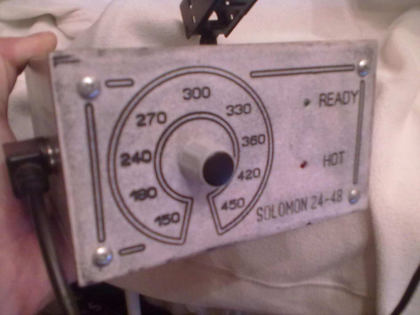Elkészült a forrasztóállomásom. Eredetileg digitális hőfokkijelzést is akartam hozzá, de valamiért nem akarta az igazságot... volt a fiókban egy 7107 alapú DVM, azt terveztem beépíteni, de kb. fél perc üzem után eltűnt róla minden kijelzés és a 7805 igen melegedni kezdett... Valahol azt olvastam, hogy a Solomon pákában K tipusú hőelem van, ezért a hőfokkalibrálást a neten található millivolt táblázat alapján végeztem. Egy kiszolgált ATX táp dobozába építettem be. Az előlap azért lett fából, mert eredetileg opálos plexiből akartam, de az első fúrásnál megrepedt és ugyanazzal a mozdulattal bevágtam a sarokba... azóta is ott van. A pákatartó fixen rá van csavarozva a dobozra, ezért elég stabil.