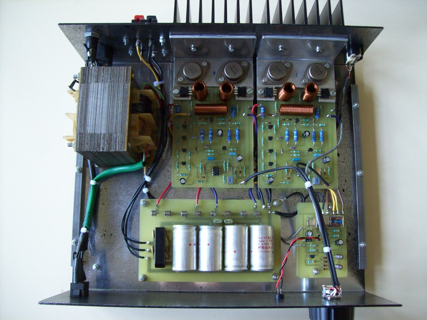 Sziasztok! Elkészültem a kis Quad 405 erősítőmmel. Videoton EA6383S táptrafója került bele. Van benne hangszóróvédelem is.