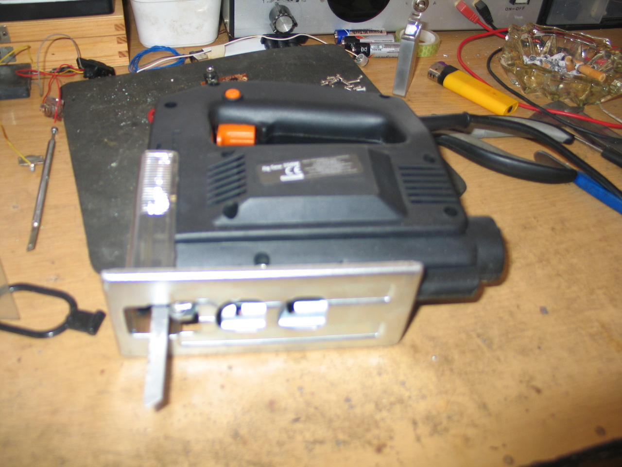 Tegnap új "munkás" költözött a műhelyembe, egy dekopir fűrész személyében, amihez kaptam egy fa fűrészlapot, és vettem 5 fémhez valót. Azt írja a UG. hogy a vágható anyagok, Fa: max 6cm, fém: 6mm. vastagság. Nem egy nagy szám, de remélem sokat és sokáig fog segíteni. Ki is próbáltam egy 3cm-es falappal, viszi rendesen. (persze a fa fűrészlappal)