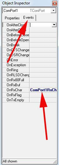 Részemről pusztán jó tanácsok. A megjegyzéseket pedig azért írtam, hogy éthetőbb legyen a dolog. Részemről az esetek többségében nem adatott meg a lehetőség, hogy rendelkezzem a kommunikáció adataival Ezeket nekem kellett kibogozni , ezért írtam, hogy segítség egy ilyen kis ön loggolás. Mellesleg szívesen segítek , mert így karban tartom az ez irányú tudást. Éppen egy soros porti programot stoppolgatok én is gyakorlásképpen. (Mostanság elég sok időm van ilyesmit csinálni sajna )A kérdésedre pedig a válaszok: - nem tettem bele sehogy . A komponensben benne van![]() Az object inspector események fülére kattintva megtalálod. (kép melléklet) - Az egyidejű kezelés így valósul meg lényegében, mivel ez egy beérkező karakterre bekövetkező esemény (procedure TForm1.ComPort1RxChar(Sender: TObject; Count: Integer). Igazából amit módosítottam program nem tökéletes még így sem csak alap , útmutató. Mint mondtam nem használom ezt a komponenst jobban szeretem külön megírni.(csak a segítség miatt tettem fel) Néhány jó tanács (ismétlem jó tanács. Írtam hasonló programokat abból merítve): - Én szálkezeléssel oldanám meg a problémát. - A fejlesztés alatt amíg írtam a progit, összekötöttem az Rx és Tx-et és így figyeltem, hogy milyen gyorsan és pontosan tud a program reagálni a vételi oldalon. - Az msdn szerint a Timeoutokat minden programhoz magadnak kell belőni. 'Röviden' ennyi De, ha gondolod írj privátba és segítek, ha tudok. A hozzászólás módosítva: Feb 23, 2013