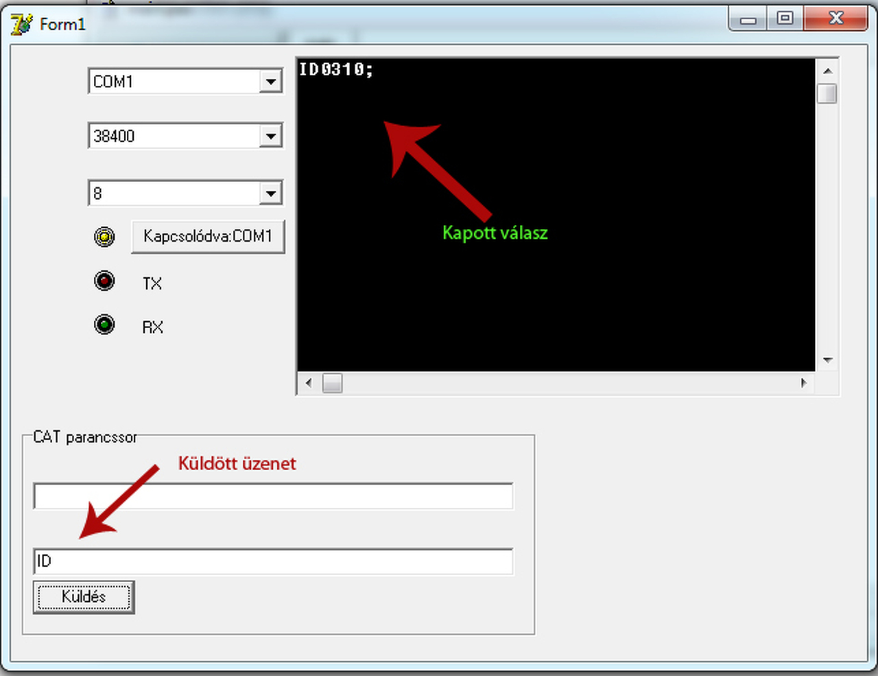Olvastam a hozzászólásokat, sokat segített a comport programozásban. Viszont van egy problémám: A fenti példaprogramok alapján készítettem egy próba programot - egy adó vevő - vezérléséhez. A probléma az, hogy az elküldött parancsra kapott választ nem írja ki a progi. Ellenőriztem a rádió elküldi a választ mégsem kerül kiírásra. Példa a kommunikációra: comport.WriteStr ('ID;'); vagyis elküldöm a rádiónak az ID; parancsot, amire a rádió az ID0310; karaktereket küldi válaszként. Mellékletként csatolom a próba programot is A másik kérdésem hogy lehet ellenőrizni a com port foglaltságát, még a csatlakozás előtt. thx Samu