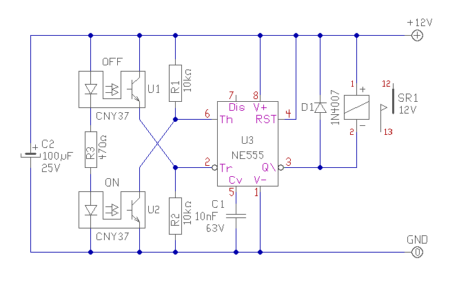 Egy öntartó reléhez, két kontaktus kell, egy záró, és egy bontó. Meg lehet oldani két egyformával is, de akkor a mechanikát kel úgy kialakítani, hogy egyék véghelyzetben zárjon egy kapcsoló, a másikban bontson. De ha optokapud van azzal önmagával is megoldható az "öntartó" kapcsolás, pld. egy NE555 IC és néhány alkatrész felhasználásával. A relének van mindössze ára másnak nemigazán. üdv!