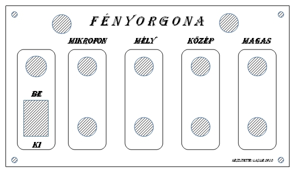 Elérkeztem a régi fényorgonám átépítésének végéhez, a dobozoláshoz. Minden alkatrész belefér egy ATX táp dobozba így az előlap mérete 8,5 cm x 15 cm. 0,7 mm-es alu lemez lesz az előlap, és a hátlap is. A hátlap nem is annyira lényeges, mint az előlap. Elkészítettem egy előlap tervet, de kíváncsi lennék a véleményetekre is. Amit az előlapon el kell helyezni: - 2 db mikrofon patron - ki-be kapcsoló (főkapcsoló lyuk méret: 13 mm x 19 mm) - 2 db poti (mikrofon erősítés, hangerő) - 2 db poti mély hangsávhoz - 2 db poti közép hangsávhoz - 2 db poti magas hangsávhoz A potik gombjai 13 mm átmérőjüek. A csatolt képen a keret az előlap méretét jelzi. A hozzászólás módosítva: Feb 28, 2013