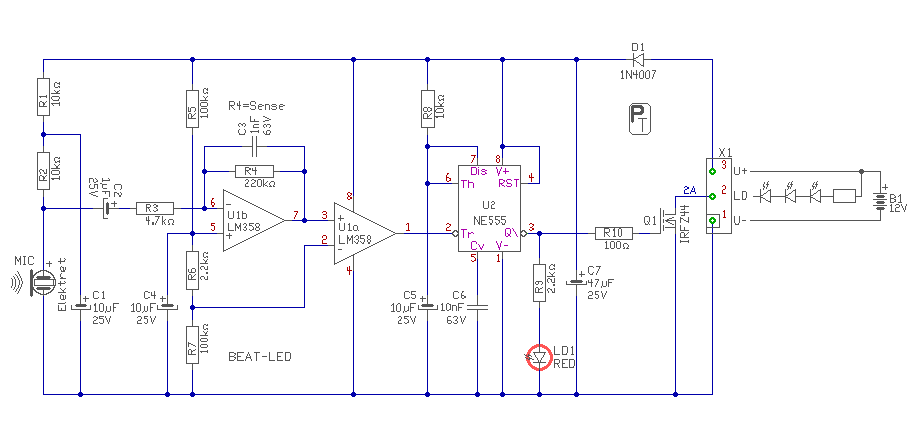 szia. Igen. Én rajzoltam egy másik kapcsolás alapján, plussz az igényeimhez igazítva. A lényege annyi a hangkártyáról kell neki jelet adni meg 15V ac feszültséget egy trafóról. 2 feszültség stabilizátor van rajta az egyik a vezérlés tápja a másik számomra egy 15V-os stab volt a villogtatott ledek számára. Mert 15V-ra vannak ellenállásozva a paneljeim. a középső 3 lábú meg egy fet ami a ledeket kapcsolgatja. Nekem 192 ledet villogtat, de ennél sokkal többet is el bír némi módosítással.