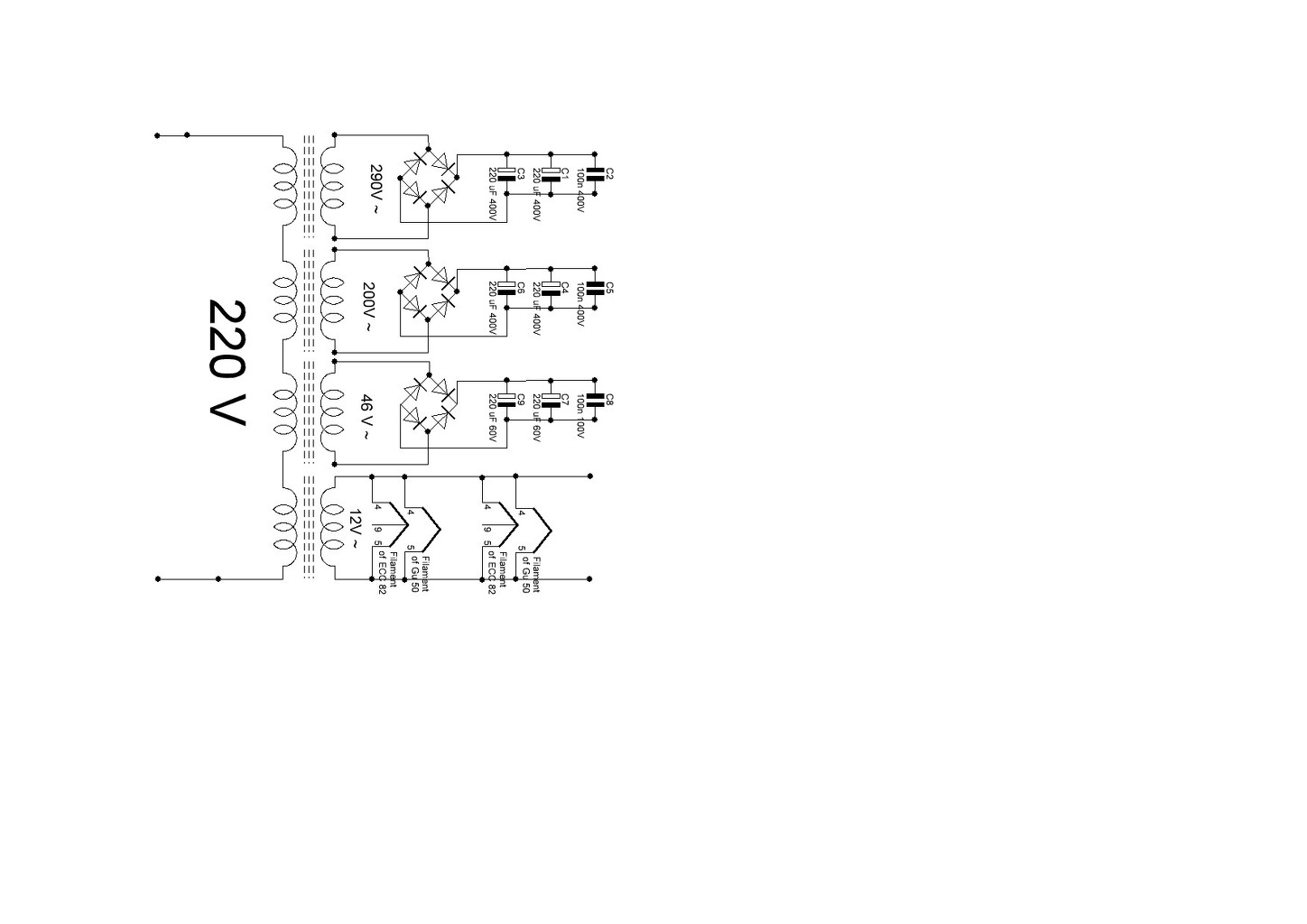 A hálózati transzformátor egy ae782-é volt.Külön tekercs fűti az ecc82-t.