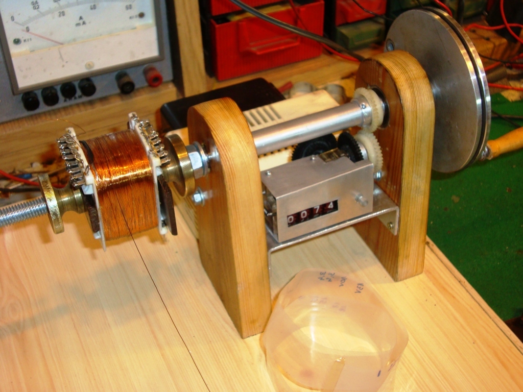 Üdv mindenkinek. Kb 2 hete írtam, hogy készítettem egy méhsejt tekercselőt, hát most itt a párja. Ha lúd legyen kövér alapon, meg ha már úgy is elöl voltak a szerszámok, alkatrészek, nekiálltam a régi trafó tekercselőm újjáépítésének is. A régi tekerő még 1953-ban készült, akkori lehetőségek szerint, azon tanultam gyerekként tekercselni. Szóval már az is muzeális, bőven kiszolgálta az idejét. Ez egy elég egyszerű szerkezet, csak a számlálót kellett kicsit komplikáltabban gyártani. A Az alap egy nullázható magnó számláló, a csigakerék egy villanyórából való 1/10-es áttétel, a többi a bontott videók maradék fogaskerekei. Az egész egy bútorlapra van csavarozva, a csapágyak kétszer zárt 6000-ek. Egy vásárba vett varrógép motor a meghajtó, lábpedáljával együtt.Azt hiszem a részletes képek mindent mutatnak nem kell többet magyaráznom.