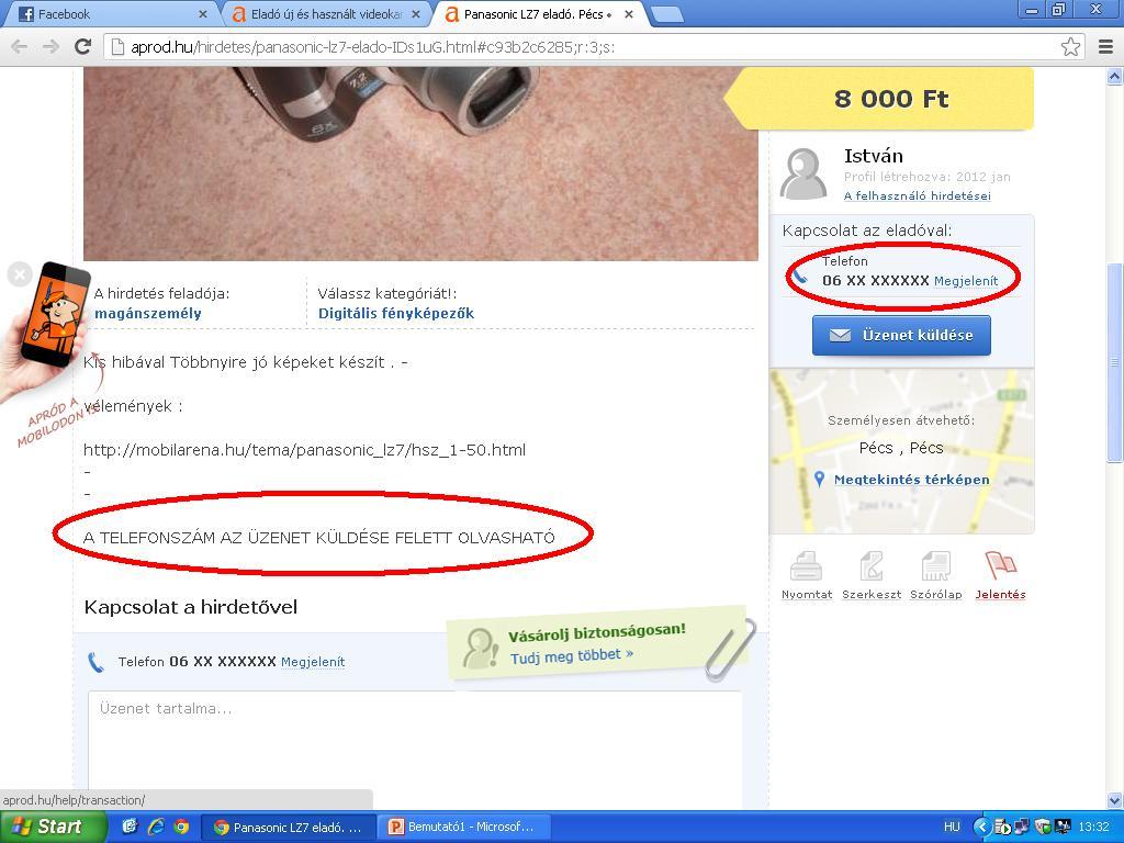 A telefonszám mellett van egy Megjelenít feliratú link, ha ráklikkelsz akkor megjelenik a telefonszám...