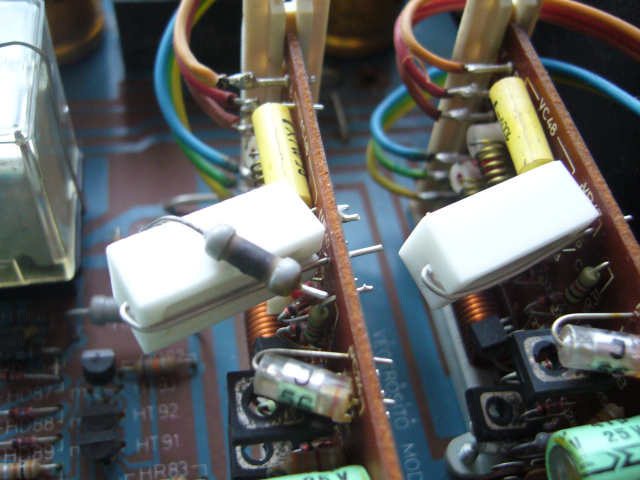 Készítettem egy képet róla, a képen látható a beforrasztott 5W-os ellenállás, rajta pedig a régi, picit elszenesedett őse...