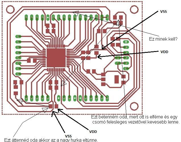 ![]() Az említett "Ez minek kell???" rész viszont elgondolkodtató... A táp bevezetéseinek elvileg először a kondenzátorokat kell érinteniük és csak azok után a kontrollert. Viszont ha azt nem teszem oda, akkor ez nem valósul meg. De itt amúgy én is hibát találok a dologban, mert akkor meg a kontroller alatt kellene kihagyni a föld összekötést nem?!?! És így biztosítanám, hogy a táp és föld bevezetések kizárólag a kondikon keresztül érjék a chip-et nem?!?! És még el nem felejtem: Teliföldesre akarom készíteni a NYÁK-ot, ez elvileg nem okoz zavarokat majd igaz? Illetve teliföldben melyik a jobb megoldás? A "tömény"/homogén, vagy a "raszteres" teliföldes? A hozzászólás módosítva: Feb 3, 2013