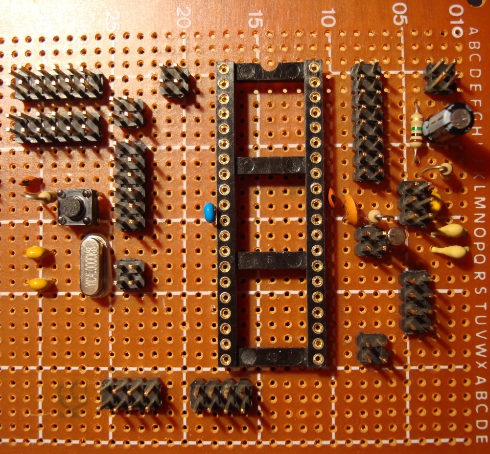 Készítettem egy teszt panelt a nagyobb DIP 40-es AVR-ekhez. Azt szeretném megkérdezni, hogy a kristály ami az XTAL pinekre megy, az túl messze van e vagy még "határon belül" van e? A rev1 képét csak azért töltöttem fel, hogy a tüskesorokat be lehessen azonosítani. SB
