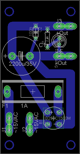Szeretnélek megkérni Titeket, hogy mondjátok meg, milyen hibák vannak a NYÁK tervemben. A kapcsolás ugyan nagyon egyszerű, de inkább ezen tanulnám meg, mit hogyan, mint egy 100 alkatrészesen. Akárhogy próbálom, nem tudom helytakarékosabban elhelyezni a Graetz és a rögzítő távtartók miatt az alkatrészeket. Ti hogy csinálnátok? Ha a kapcs. rajzban is van javítani való, azt is mondjátok. Köszönöm előre is.