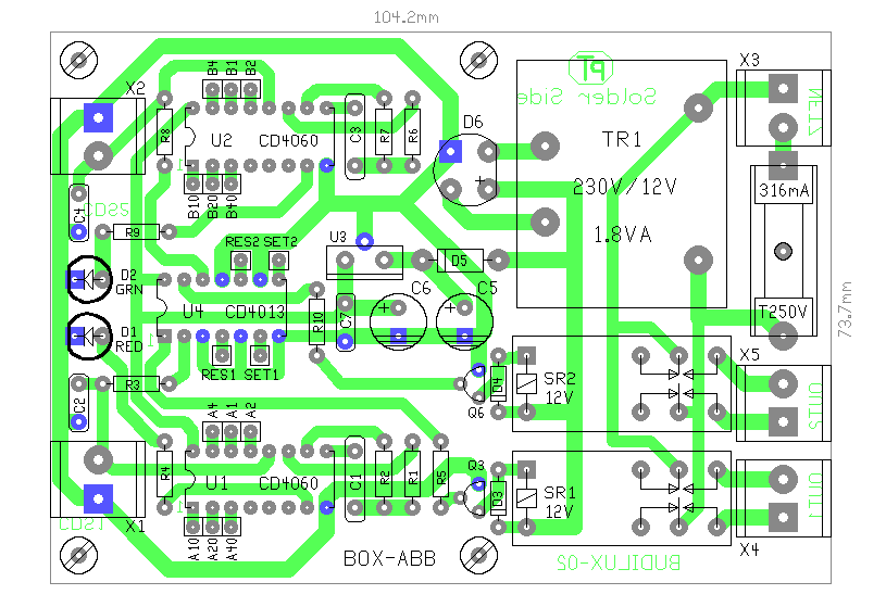 Ez nagyon jó! Jól értem akkor, hogy mivel nekem csak az egyik felére van szükségem (tételezzük fel, hogy a felső része, ahol a CD4060 az U1), akkor az ottani X1 csatlakozóra egy fotoellenállást kell tenni? Vagy rosszul gondolom? Még egy kérdés: az időzítéshez A1, A2 vagy A4 valamelyikét kell a SET1-re kötni és A10, A20 vagy A40 valamelyikét a RES1-re kötni? (Ha nem mentem még az agyadra, akkor melyik kombináció lehet az a kb. 5 perc amíg lámpaoltás után megy a ventilátor? )Nagyon köszönöm a segítséget!