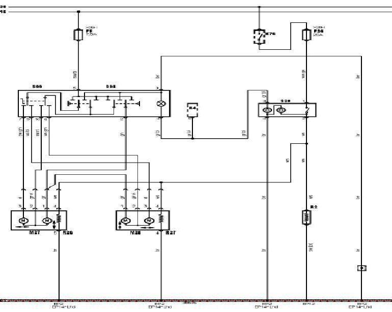 Szia! Az "F26" jelű biztosítékon van a hátsó ablak fűtése és a vp tükrök mozgatása is ami csak az ablakfűtési kapcsoló bekapcsolásakor aktív. Ha kikapcsolt ablakfűtési kapcsolónál nem megy a tükör mozgatás de a fűtés igen, akkor zárlat lehet valahol a pozitív szálon (fehér színű vezeték). Nem találni a rajzon relés fokozatot, (pedig a 99' utániakat néztem meg) csak kapcsolót és a biztosítékot, ami 25A-os.