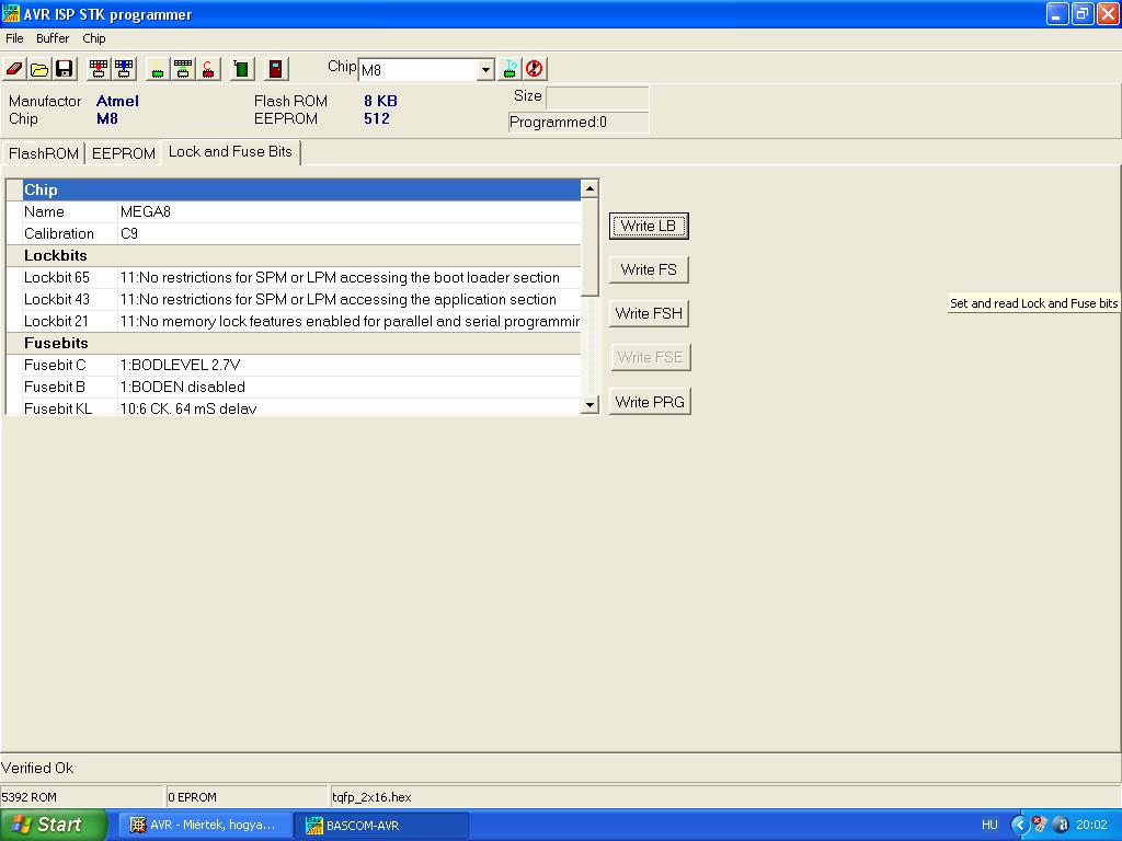 Én egy új avr-be írtam a progit a BASCOM segítégével, a fuse biteket nem piszkáltam.Ha te is labortápba építed a 12V-os stabra jókora darab hűtés kell, mert a puffer feszből (pl nálam 32V) csinál 12-őt. At ötvoltos az viszont nem melegszik számottevően, biztos hogy nincs ott valami elkötés?