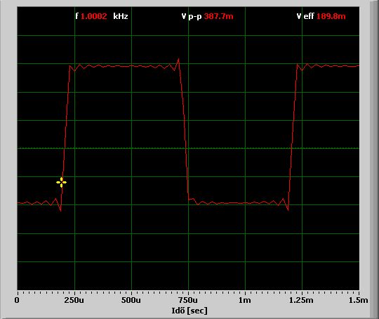 marad a végén a hat 1N4148. Az elején áttenném az 1u kondit az osztó utánra. Változtatja ez a jelalakot, vagy csak átmegy "olvadó biztosítékba"? Idézet: „Az 1MHz-el azt akartam példázni, hogy 1kHz nem nagy kunszt egy 20 megás szkópnak.” A szkópnak valóban nem, a jelet szállító kábelnek már sokkal inkább! Főleg ha a kábel bemeneti végére soros ellenállás kerül...