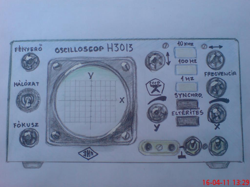 Kifelejtettem, a három fehér nyomógombbal feltehetőleg az eltérítést kell a vizsgálandó jel frekvenciájához igazítani, hogy jó méretű jelalakot ábrázoljon. És a 3 poti: valószínűleg az "Y" feletti a függőleges erősítést-méretet, ,"X" feletti poti a külsö bemenő "X" jel osztója, a harmadikkal gondolom még a triggertszint állítható hogy álló képet kapjunk.