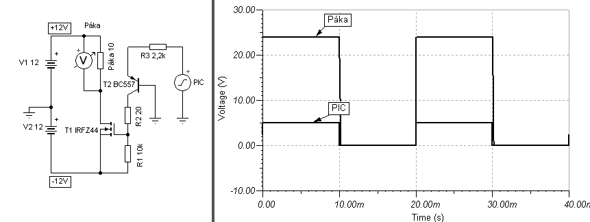 Hello! Azért kell a teljes rajz, mert ha Te valamit a +-12V-ról járatsz, és a Fet forrása a -12V-on van, akkor nem csoda ha nem kapcsol ki. Hiszen a -12V-hoz képest a GND már +12V-on van, Ha meg a PIC magas jelet ad ki, akkor meg már +17V a GS feszültség. Vagy is itt valami nem stimmel..