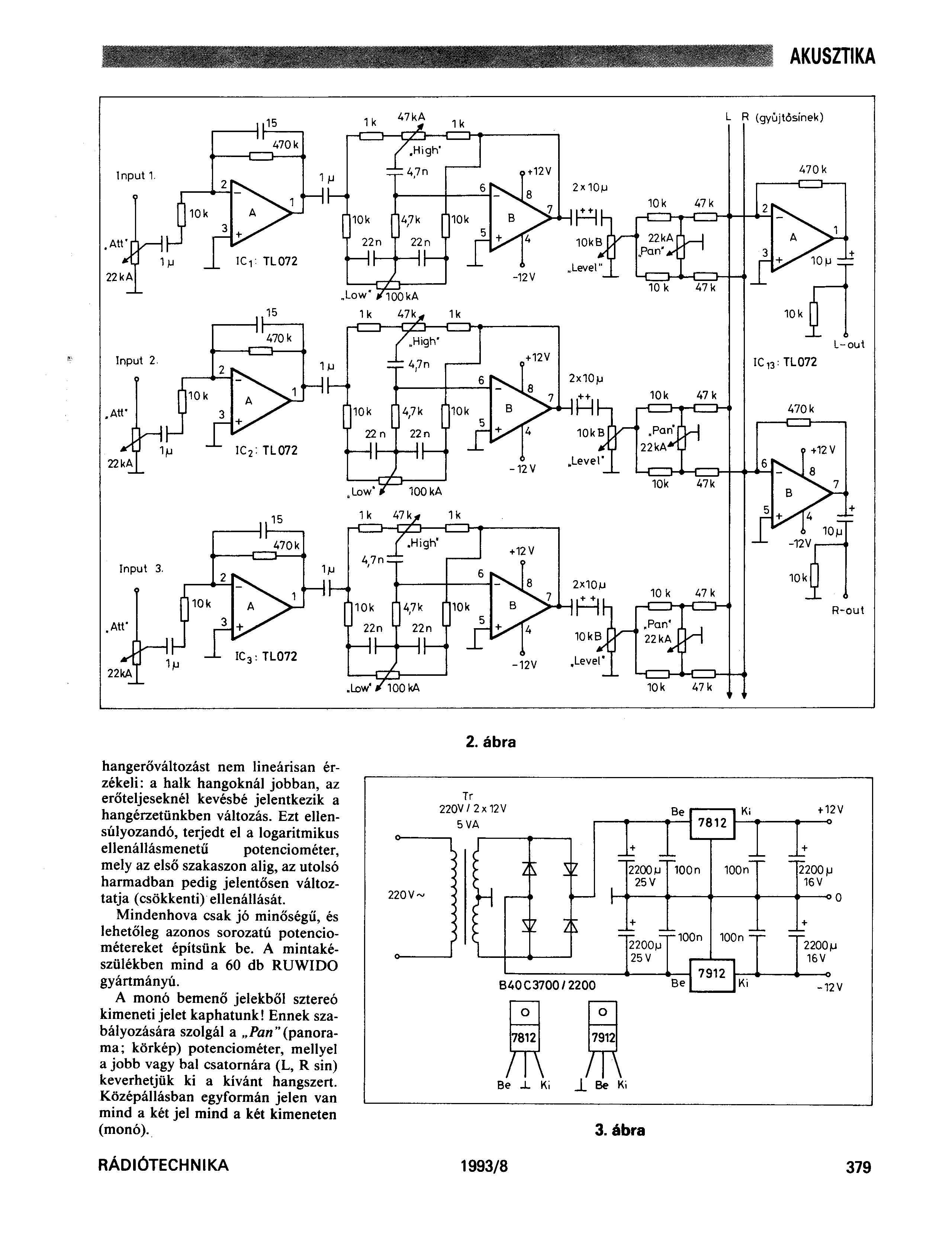 Szevassz Valve.A keverőm már azóta 3 sávos kettő eggy kis dobozba 1 meg már az erősitőbe.Azért épült passziv elemekből mert az ehhez szükséges műveleti erősitő az LM1036 előtt gyárilag ott van mármint amit Urbánnál lehet kapni még most is Kit formájában igy nem kellet hozzá aktiv elem csak eléteszem és megvan a keverő.A műveleti erősitő meg szintilleszti az LM1036 számára és a kimenetén meg tovább erősiti a végfokozat számára a hangerő poti függvényébe.Tsá Valve.Mégy annyit hogy neked mennyi a bazi drága pontosan ird már le nekem lécci hogy mennyibe kerül és hol lehet kapni örök hálámmal tartoznék neked.Mégegyszer tsá és eddig is mindent kösy szépen.