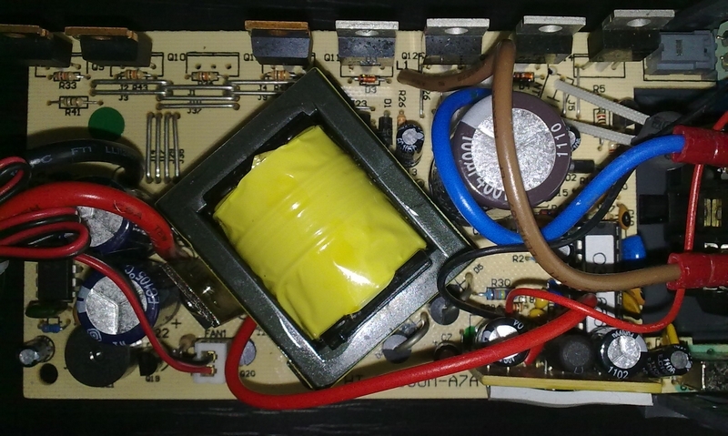 Ebben? Ne vicceljél már. Szerintem még passzív PFC se nagyon van benne, sőt, azon se lepődnék meg, ha az EMI szűrő is teljesen hiányozna belőle. De kérjük meg zoli01-et, hogy csináljon a fedél alatti dolgokról egy fotót, abból kiderül.
