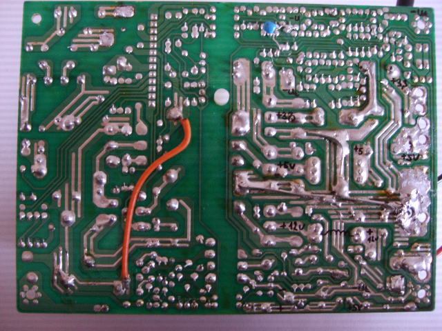 A -12 V-os oldalon általában sima 1N4001 vagy 4002-es diódák vannak és legfeljebb 100 µF 16 V-os kondi. Előfordul, hogy valahol van még egy soros dióda. Ezt ki kell hagyni (áthidalás a helyére). A ferritgyűrűn pedig vékony szálból van a tekercse. Ezeket a korábbi hozzászólásomnak megfelelően ki kell cserélni. A diódák lehetnek pl. FR302, a kondi 1000 µF 16 vagy 25 V. A tekercset azt sajnos át kell tekerni 2 egyforma vastag (0,6-0,7 mm-es) szállal, a legnagyobb menetszámmal egyezően. Ha van kis álló ferritmagos tekercsecske, azt is erősebbre kell cserélni.