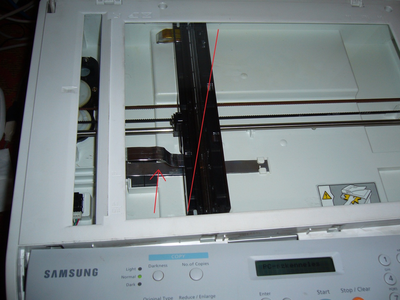 Az a törés ott nem nagyon tetszik! Próbáld meg esetleg kisimítgatni óvatosan! Annak szép egyenesnek kellene lennie, és ívben hajlania ahogy mozdul a szkenner. Idővel előfordul a kábel törése is, ami szemmel nem látható ugyan, de a másolt képen kihagyásokat okozhat. Könnyű felismerni, mert ha a konfig-oldalt kinyomtatva tökéletes, akkor az a baj. Csak azért mondom, mert ha így meg van gyötörve a kábel, akkor várható ez is.