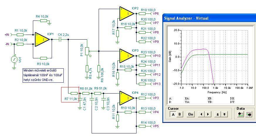 Az érintett műveleti erősítők kimeneti lábain mérj egyenfeszültséget.
