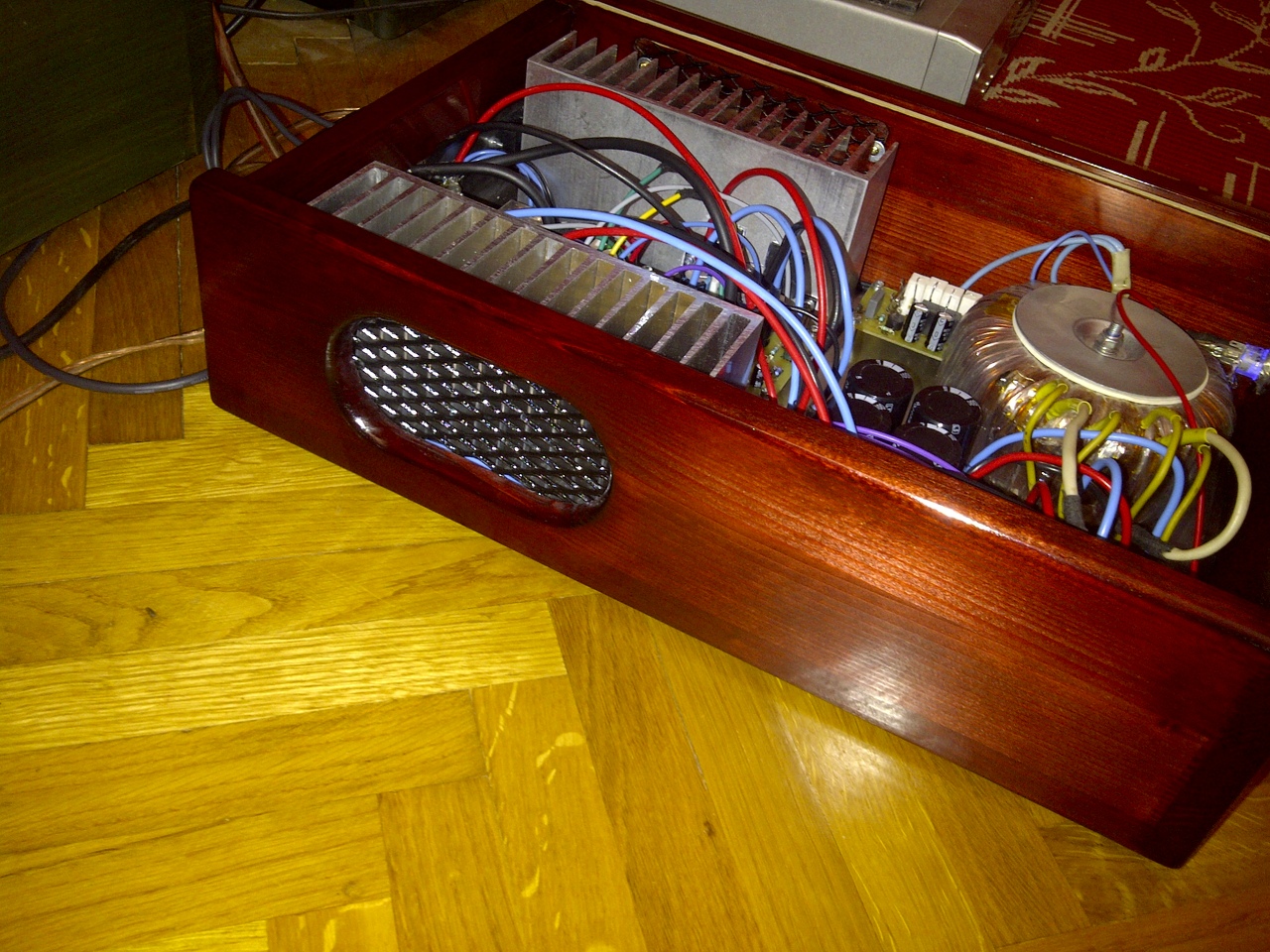Szia! Végre leültem... Köszönöm nagyon jó lett, egyszerűbb volt mint a potit kivenni!!! Be is dobozoltam, már csak a perfolált lemez a kór lábak és a feliratozás hiányzik... Ez már a könyebbik rész. Mégegyszer köszönöm Neked a segítséged, nélküled nem jött volna össze! Pár előzetes kép, és majd , ha kész teljesen arról is teszek fel. Nagyon szép hangú végfok, teljesen zajtalan, gerjedésmentes, dinamikus.
