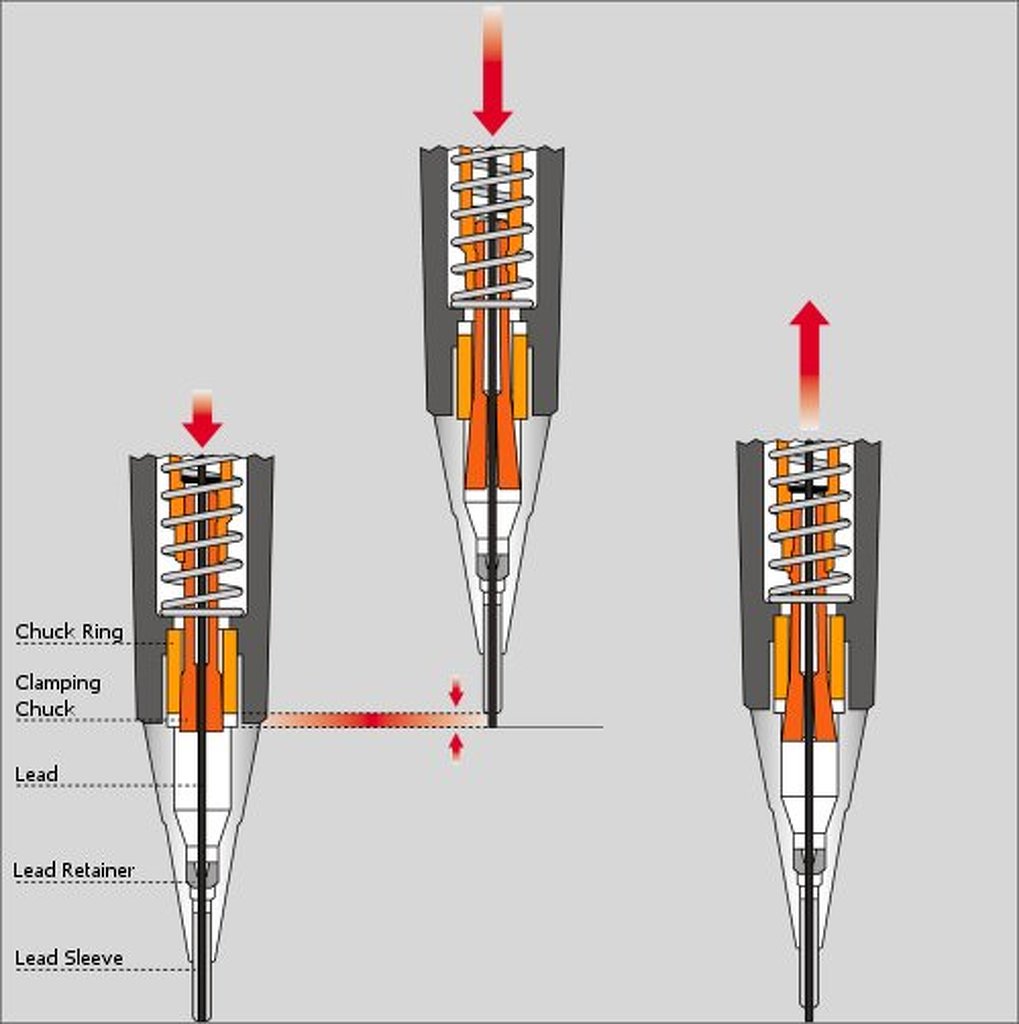 Szétcsavarod, és rá kell húzni a szűkülő végével kifelé a gumit a grafitszálra. A többi hegynél ha az előző elfogyott, már magától bele vezeti ennek a nyílásába. Ez fogja meg a kieséstől a betétet addig, amíg megnyomod a kitoló gombot. A kitoló gomb a befogó pofákat összeszorító gyűrűből kiemeli, egy picit előre tolja a hegyet amíg a gyűrű nem enged- aztán mikor visszaengeded ismét megfogja stabilan a grafit rudat. A hozzászólás módosítva: Máj 3, 2014